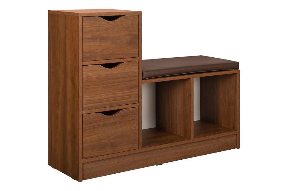 Тумба для прихожей Лайт 10.84 – отличное решение для небольшой прихожей. Конструкция тумбы включает в себя мягкое сиденье для комфортного переобувания, две открытые ниши для размещения обуви и три выдвижных ящика для хранения мелочей, от щеток для обуви до тапочек. Поверхность тумбы может быть использована в качестве дополнительной полки для головных уборов и перчаток.