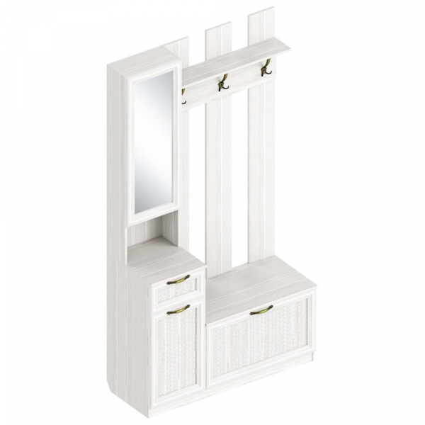 Прихожая "Александрия" компакт - для тех, кто попал под обаяние мебели светлых оттенков. Она выглядит легкой и в то же время основательной. Привлекает элегантным декором. Ее стиль можно назвать классическим.