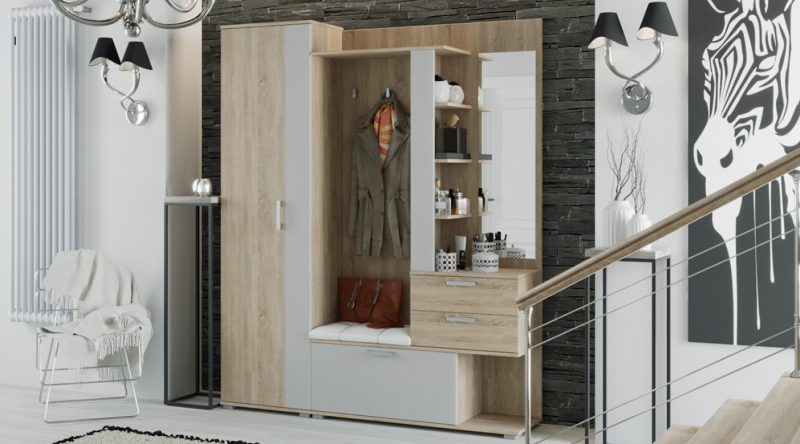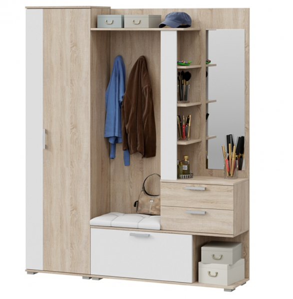 Прихожая Эрика секция с крючками+шкаф сонома/бел.