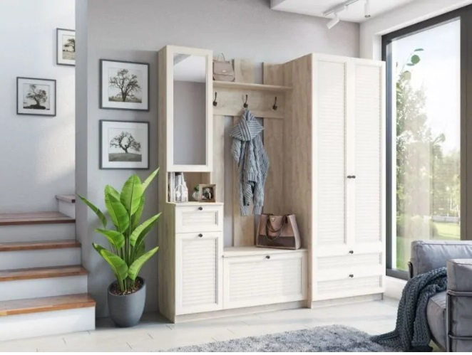 Прихожая прекрасно подойдет для обустройства небольшой прихожей в квартире. Она значительно повысит уровень бытового комфорта.Набор мебели из качественного сырья представлен в благородном нейтральном цвете, который подойдет для любого интерьера. Светлая мебель идеально дополнит небольшое помещение, визуально расширит пространство, сделает помещение светлее.