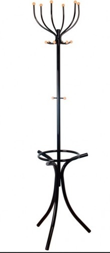 Напольная вешалка используется для верхней одежды и головных уборов, дополнительно оснащена подставкой для зонтиков. На рожках установлены прочнее пластиковые заглушки шарообразной формы.