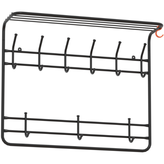 Вешалка для одежды «2-х ярусная» 80 см изготовлена из металлической трубы с порошковым покрытием, не подверженном коррозии – изделие прослужит долго! Прочный металл надежен в использовании. Вешалка имеет 2 ряда крючков – для взрослых и детей. Теперь ребенок сможет самостоятельно убирать свою одежду. Для головных уборов и аксессуаров имеется верхняя полка.