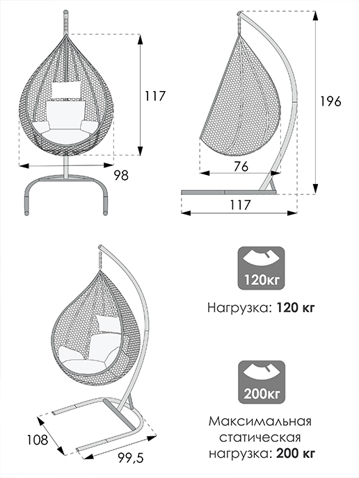 Кресло подвесное Баунти с чехлом для корзины из ткани - идеальный вариант для дома и садового участка.Также идеально впишется в современный интерьер квартиры или офиса. Времяпровождение в этом кресле для Вас будет максимально комфортным и уютным. Металлический каркас состоит из стойки и кокона с подвесным механизмом . Кресло поставляется в разобранном виде, собирается легко согласно инструкции.