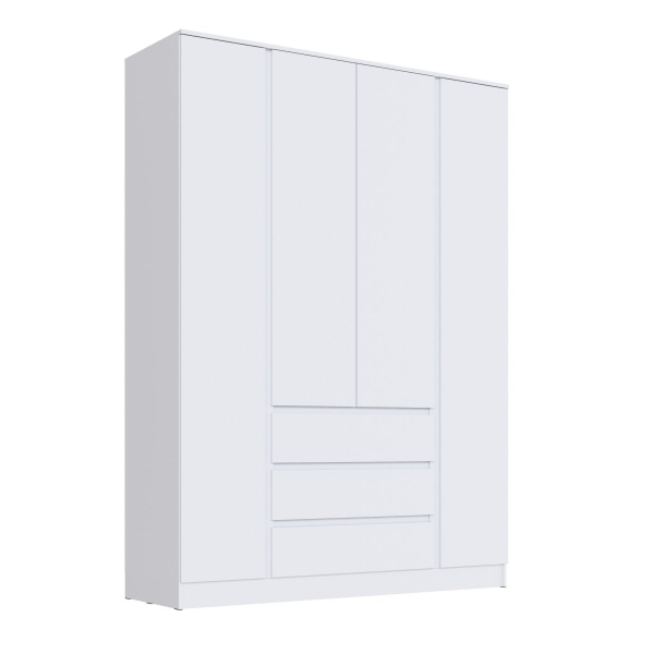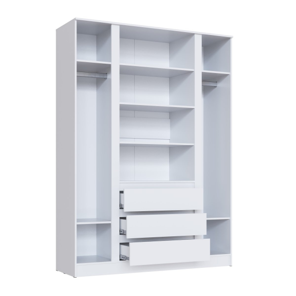 Вместительный шкаф Мэнкс идеально впишется в интерьер современной спальни. В центральной части шкафа установлены широкие полки для повседневной одежды и ящики для белья и аксессуаров. В боковых секциях используйте два независимых отделения для размещения одежды на плечиках.