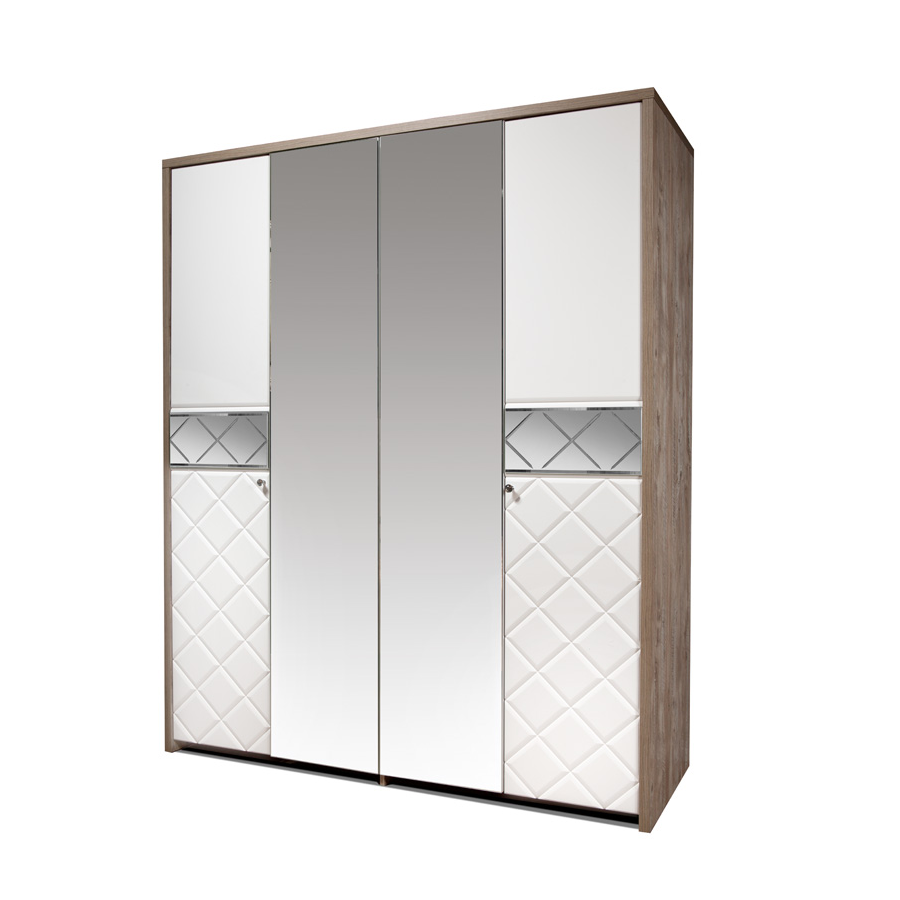 Большой и стильный четырехдверный шкаф для одежды 4Д Кристал КМК 0650.8, в котором поместится огромное количество вещей. Для этого в шкафу предусмотрены множество полок и специальная штанга для плечиков. На центральных дверцах шкафа установлены два больших зеркала. Мебель из модульного набора Кристал отличается изысканным, элегантным дизайном и спокойными светлыми тонами в оформлении. Модульность набора мебели позволяет создать свой собственный, неповторимый комплект, который идеально впишется в интерьер любого помещения.