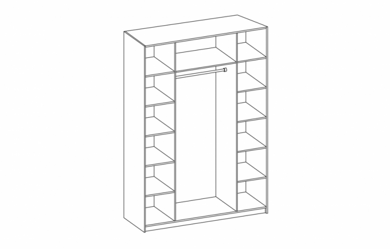 Классический четырехстворчатый шкаф достаточно вместителен, чтобы компактно разместить Вашу одежду. Вы можете выбрать подходящее для Вас наполнение шкафа. Этот шкаф может быть единственным шкафом в Вашей комнате, а может быть одним из элементов отличной гардеробной.
