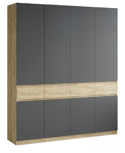 Шкаф 4-х створчатый "Турин" - это большая система хранения, которая позволяет сохранять вещи в идеальном порядке. Дизайн шкафа выполнен в современном стиле, используя качественные материалы и фурнитуру, что добавляет шика и элегантности в любой интерьер. Каждая створка шкафа "Турин" усилена дополнительными петлями, что обеспечивает лёгкий и безопасный доступ к вещам внутри. Кроме того шкаф оснащён выдвижными ящиками, которые позволяют организовать хранение максимально удобным образом.