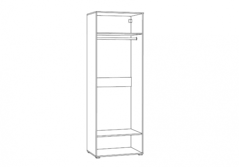 За двумя глухими дверцами находится штанга для плечиков, антресольная полка и нижняя полка.