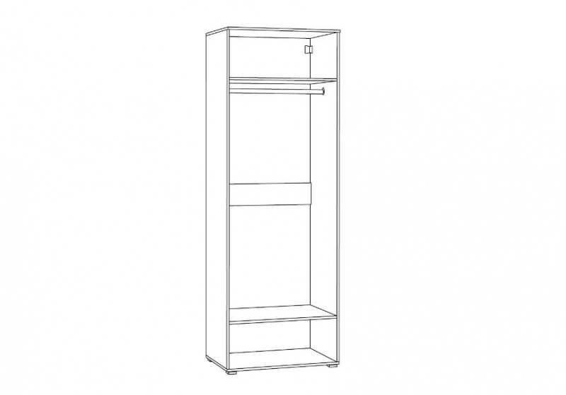 За двумя глухими дверцами находится штанга для плечиков, антресольная полка и нижняя полка.