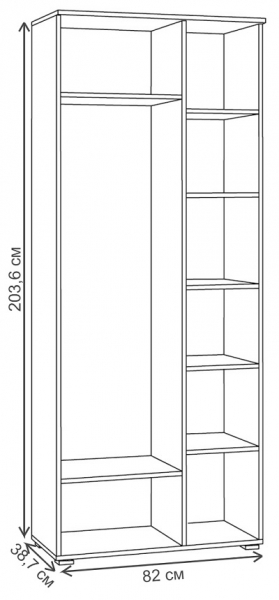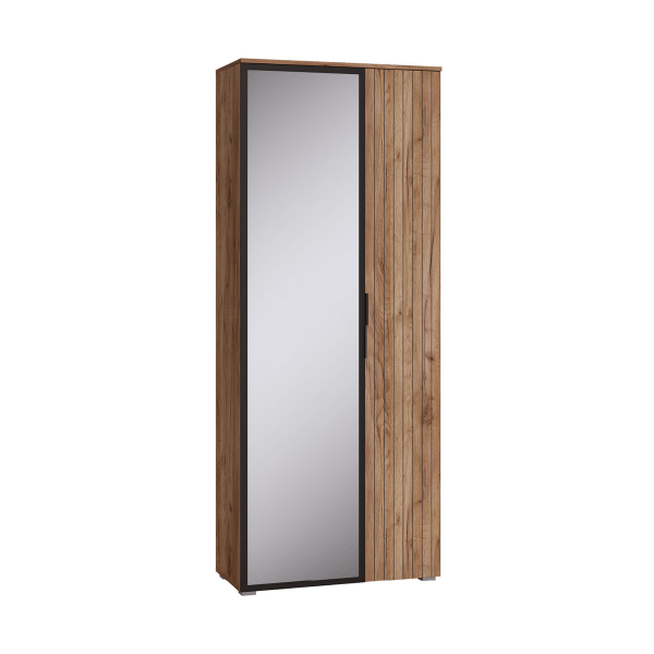 Шкаф Гранд 13.226 Дуб крафт табачный предоставит достаточно места для размещения и бережного хранения вашего гардероба. За распашными дверьми находится выдвижная штанга для вешалок-плечиков с верхней одеждой. Полки, скрытые в левой части, пригодятся для аккуратного размещения сложенной одежды, различных аксессуаров и коробок с обувью. Индустриальная мебель Гранд выполнена в стиле лофт.