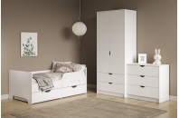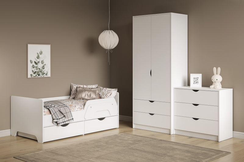 Шкаф для одежды Уна 13.327 будет отличным дополнением интерьера уютной детской. Изделие поможет разместить весь гардероб вашего ребенка. За двумя распашными дверьми находится широкая штанга для вешалок-плечиков с безупречно выглаженной одеждой. Антресольная полка и два выдвижных ящика предназначены для хранения одежды, постельного и нижнего белья, различных аксессуаров и коробок с обувью.
