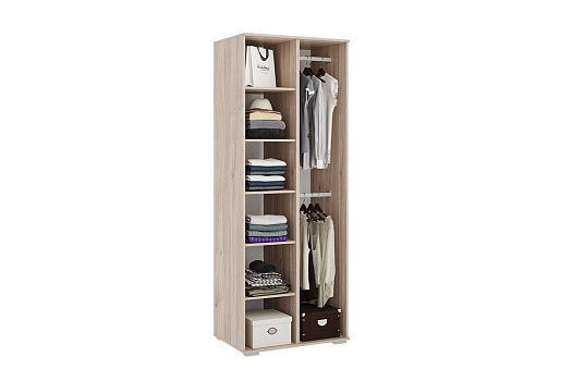 Стильный и модный шкаф «Лайк» станет настоящей находкой для современных людей, которые ценят комфорт во всем. Компактный, но достаточно вместительный шкаф позволит разместить весь ваш гардероб. За двумя распашными дверьми находятся две штанги для вешалок-плечиков с костюмами, брюками и красивыми платьями. А множество полок пригодятся для бережного и аккуратного хранения одежды и белья, обуви и аксессуаров.