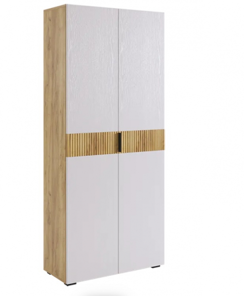 Шкаф 2-х дв Бери дуб крафт золотой/белое дерево предоставит достаточно места для размещения и бережного хранения вашего гардероба. За распашными дверьми находится выдвижная штанга для вешалок-плечиков с верхней одеждой. Полки, скрытые в левой части, пригодятся для аккуратного размещения сложенной одежды, различных аксессуаров и коробок с обувью.