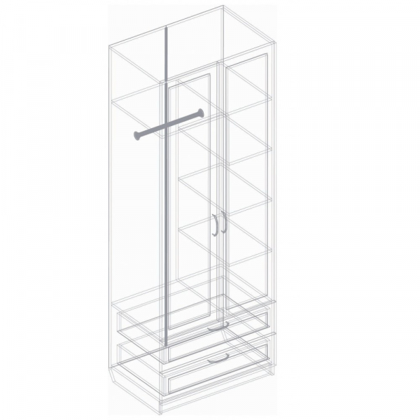 Стильный и вместительный  шкаф из серии "Филадельфия" оборудован удобными ящиками на шариковых направляющих, в которые будет легко сложить одежду, а так же в верхней части - отделением со штангой с большим пространством для хранения вещей и полочками. Дверцы в стиле "Жалюзи" визуально облегчают конструкцию.