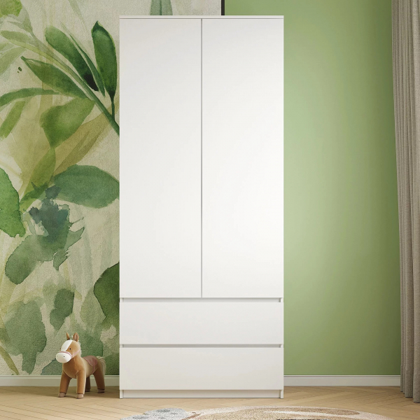 Двухстворчатый шкаф Бьянко в минималистичном дизайне. Фактурный - белый лофт, под декоративную штукатурку.