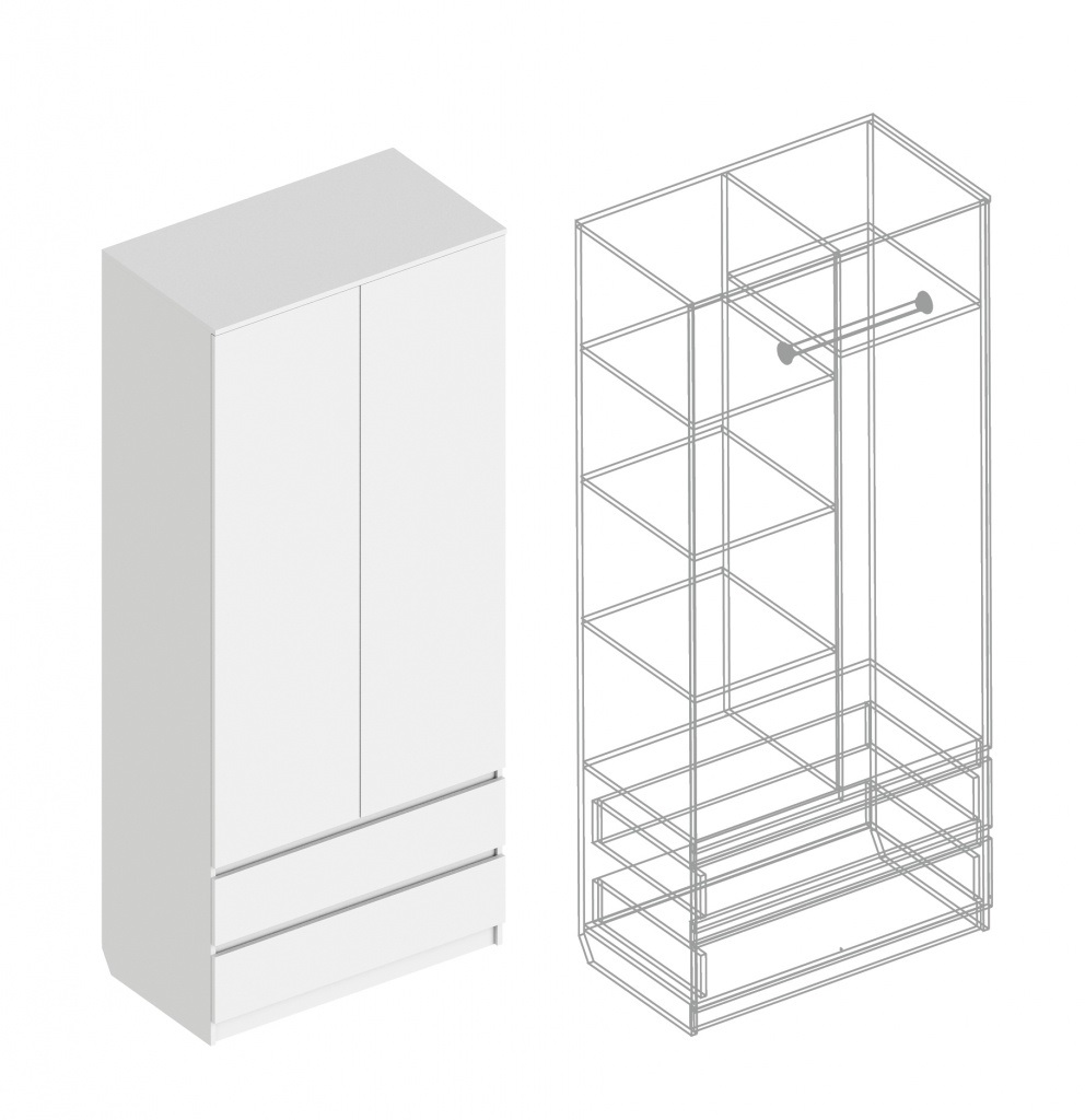 Шкаф Бьянко 2ст/2я 900*500*2100 Белый лофт