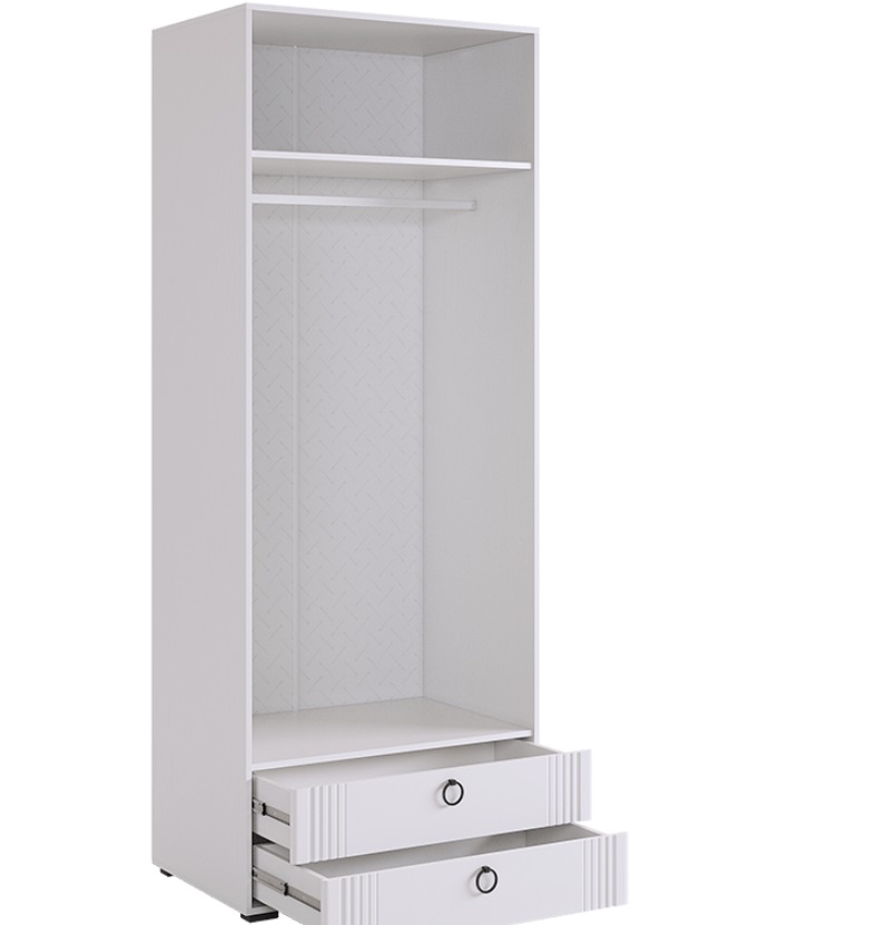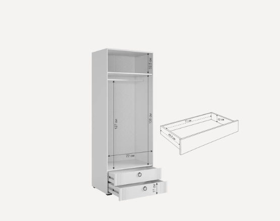 Шкаф Ева двухдверный 103.01   прекрасно впишется в любой интерьер уютной комнаты, а также предоставит достаточно места для бережного хранения вашего гардероба. За распашной дверцей находятся штанга для размещения вешалок,а два вместительных выдвижных ящика пригодятся для хранения вещей и разнообразных аксессуаров. поэтому данная модель подойдет для размещения как в спальной зоне, так и в зоне прихожей.
