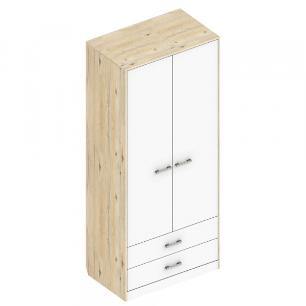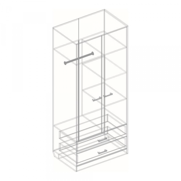 Шкаф Милана имеет две распашные двери и два больших ящика, которые обеспечивают достаточное пространство для хранения вашей одежды и аксессуаров. Внутреннее пространство шкафа разделено на несколько отделений, что позволяет разместить вещи более организованно. Фасад шкафа выполнен в лаконичном дизайне с металлическими ручками, что делает его привлекательным элементом в любом интерьере.