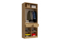 Шкаф комплектуется штангой для для размещения одежды на плечиках, в центральной части расположены 2 выдвижных ящика. Вместо ручек предусмотрены утопленные вглубь планки, которые создают нишу за фасадом для захвата и открывания рукой.