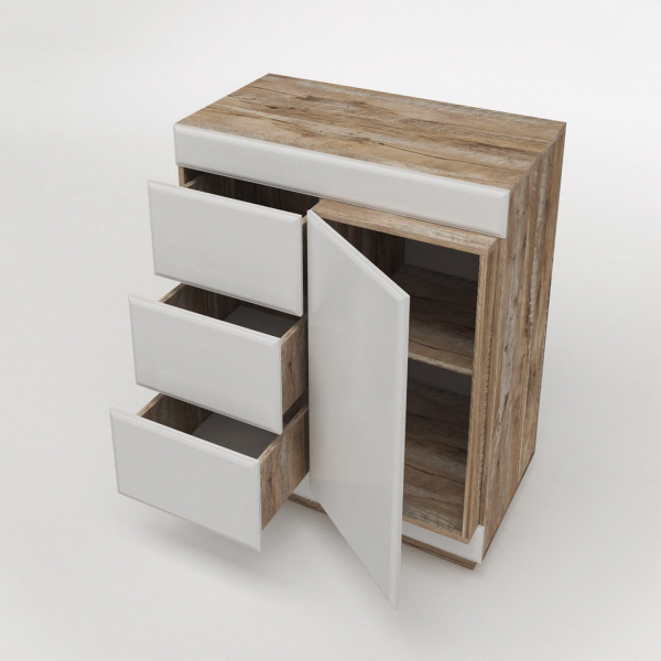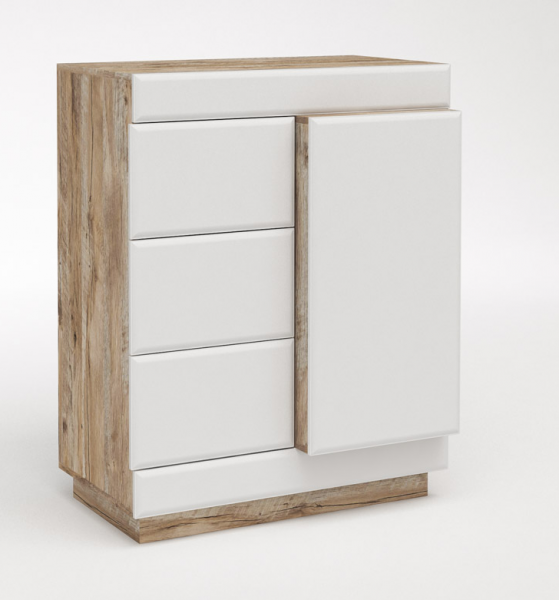Высокая тумба—комод серии «Роксет» будет прекрасно смотреться в Вашей гостиной или спальной комнате. В сочетании с другими предметами из коллекции Роксет вы создадите потрясающий интерьер.Петли без доводчиков. В данной коллекции отсутствуют ручки, для удобства открывания дверь и накладки ящиков изготовлены больше корпуса, со свесом. За дверью несъёмная полка. Правая часть выступает вперед по отношению к корпусу, что создает 3Д эффект. При желании петли с доводчиками можно приобрести дополнительно и самостоятельно установить их.