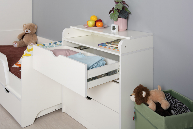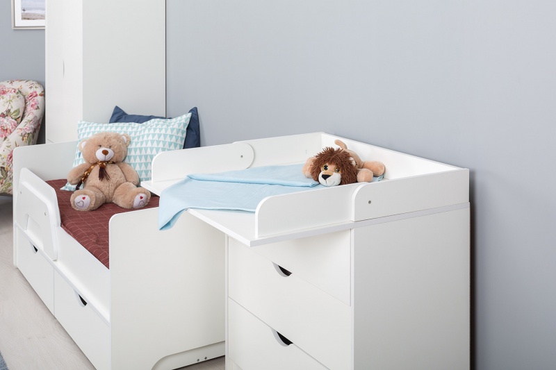 Комод пеленальный Уна 13.304 будет отличным дополнением интерьера уютной детской. Изделие оснащено тремя вместительными выдвижными ящиками, созданными для хранения одежды, пеленок, постельного белья, памперсов и других необходимых приспособлений. Комод оборудован выдвижной полкой, которая специально создана для пеленания малыша.