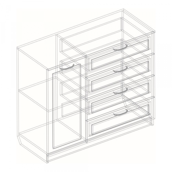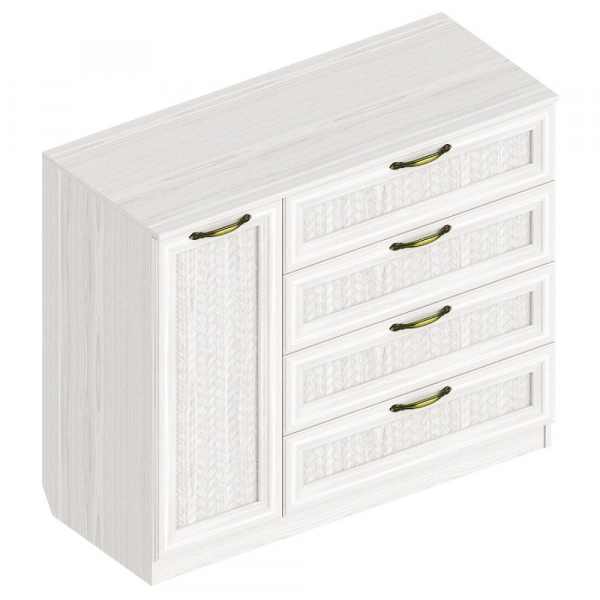 Стильный комод Александрия СА-04 оснащен четырьмя вместительными выдвижными ящиками и отделением с полкой за распашной дверкой. Столешница широкая, просторная позволяет разместить элементы декора, фото. Комод Александрия производится из экологически чистых материалов - корпус и фасад из ЛДСП. Торцы защищены кромкой ПВХ. Внешняя простота без вычурности, не отменяет красоту и гармоничность стиля коллекции мебели Александрия. Такой комод станет важным и функциональным предметом мебели, который дополнит интерьер спальни, гостиной или детской комнаты и внесет удобство и уют.