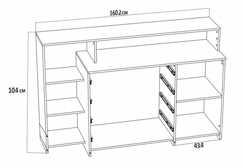 Особенностью комода является наличие 4-х выдвижных ящиков на роликовых направляющих и отделения с двумя полками за распашной дверцей. Это позволяет удобно организовать хранение одежды, аксессуаров и других предметов.