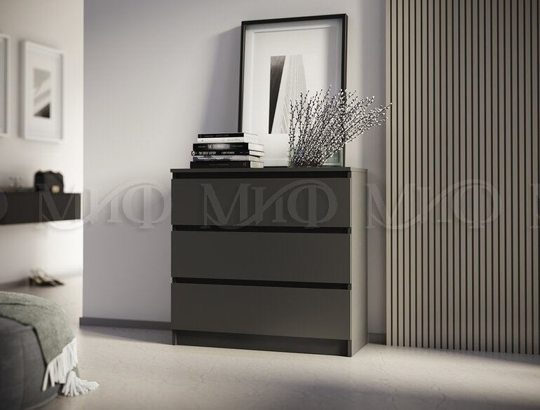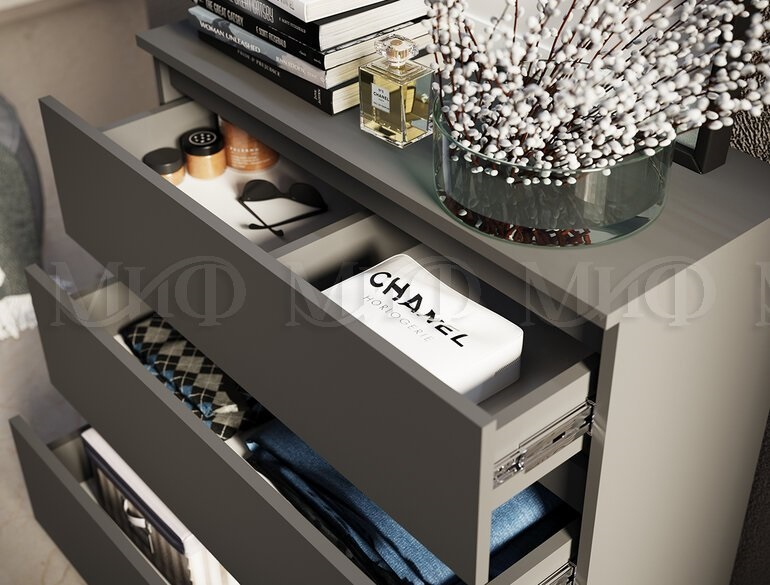 Комод Челси — стильный минималистичный комод из трех выдвижных ящиков. Назначение универсально: для хранения белья и одежды, аксессуаров, домашнего текстиля, учебных и творческих принадлежностей, косметики и многого другого.