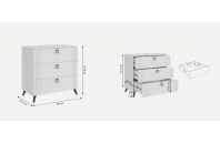 Изысканный и практичный комод Ева состоит из трёх больших ящиков, в которых можно разместить все необходимые вещи, а на широкой столешницы можно поставить цветы, фотографии близких людей, картину или элементы декора. Комод Наоми прекрасно впишется в интерьер вашей комнаты, а также привнесет нотки элегантности.Образ тумбы дополняется интересной и стильной металлической фурнитурой.