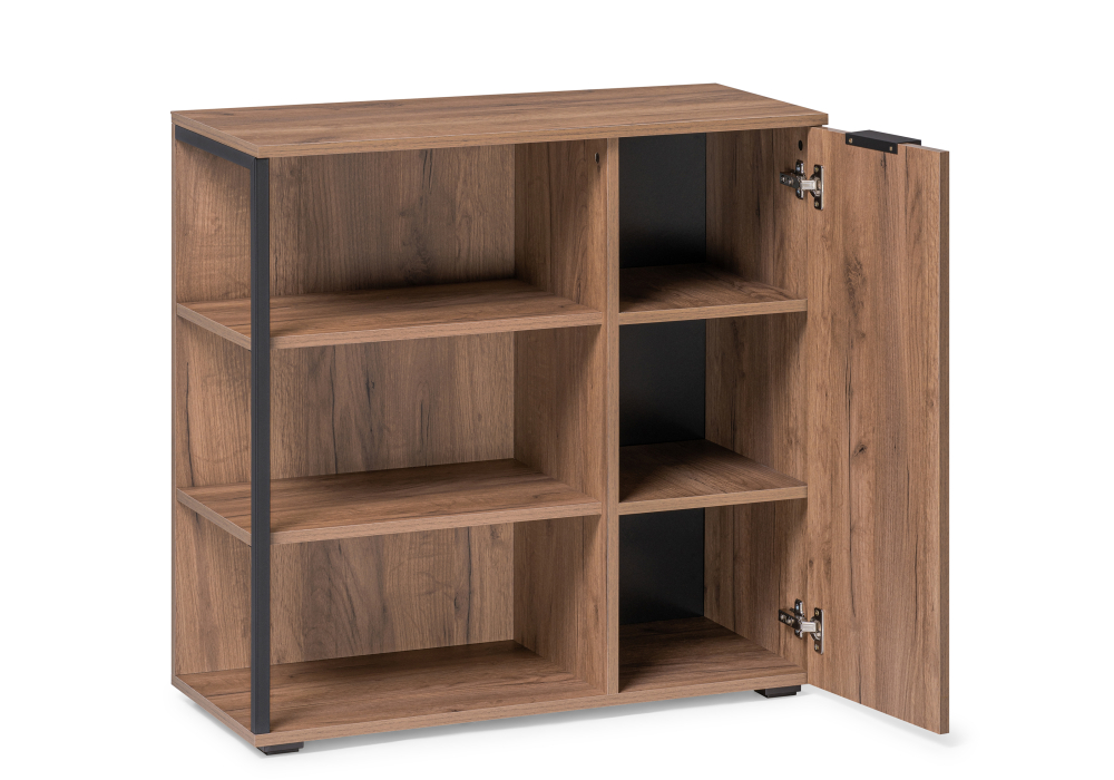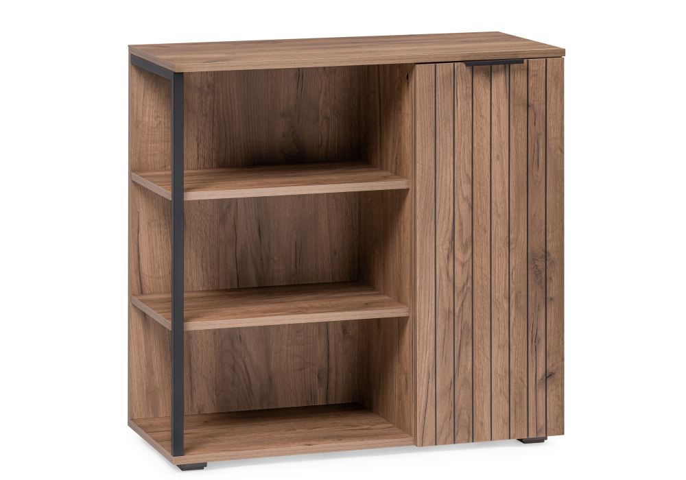 Комод Гранд 16.222 Дуб крафт табачный - функциональный модуль с шкафчиком за глухой дверцей и тремя открытыми полками.