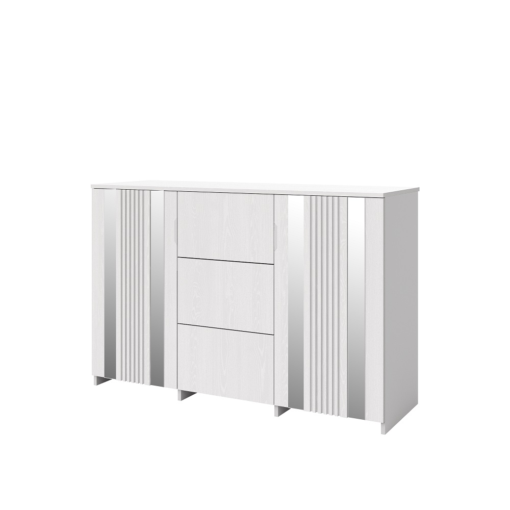 Комод Харди — стильное и практичное решение для оформления интерьера и организации пространства. Комбинированное наполнение предусматривает три выдвижных ящика по центру и два отделения с полками за распашными дверцами. Таким изделием вы сможете заменить громоздкий и ненужный шкаф. Модель за распашными дверьми скрывает полки, которые созданы для аккуратного размещения одежды, постельного и нижнего белья. Выдвижные ящики послужат для хранения разнообразных аксессуаров и косметики. Сверху на комоде вы сможете расположить вазу с красивыми цветами и семейные фотографии. Изысканная мебель Харди способна украсить спальню и создать комфортные условия для отдыха.