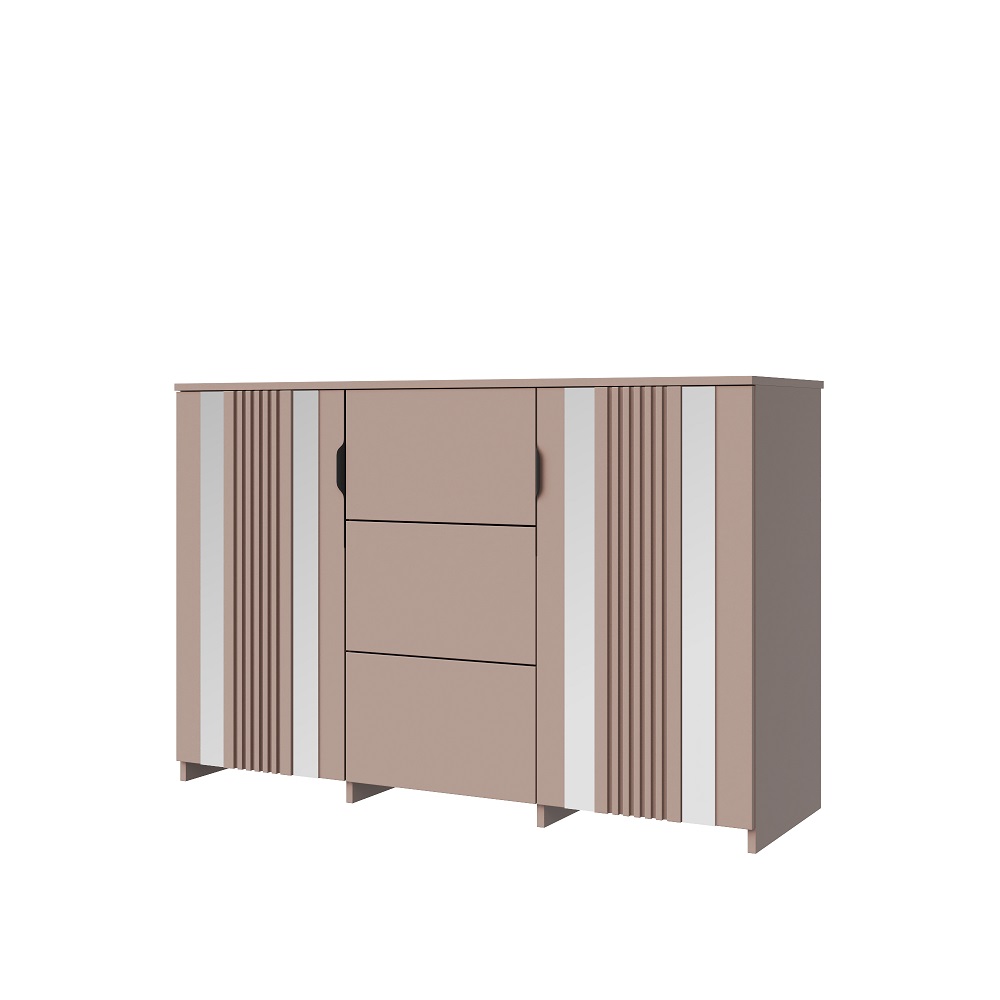 Комод Харди — стильное и практичное решение для оформления интерьера и организации пространства. Комбинированное наполнение предусматривает три выдвижных ящика по центру и два отделения с полками за распашными дверцами. Таким изделием вы сможете заменить громоздкий и ненужный шкаф. Модель за распашными дверьми скрывает полки, которые созданы для аккуратного размещения одежды, постельного и нижнего белья. Выдвижные ящики послужат для хранения разнообразных аксессуаров и косметики. Сверху на комоде вы сможете расположить вазу с красивыми цветами и семейные фотографии. Изысканная мебель Харди способна украсить спальню и создать комфортные условия для отдыха.