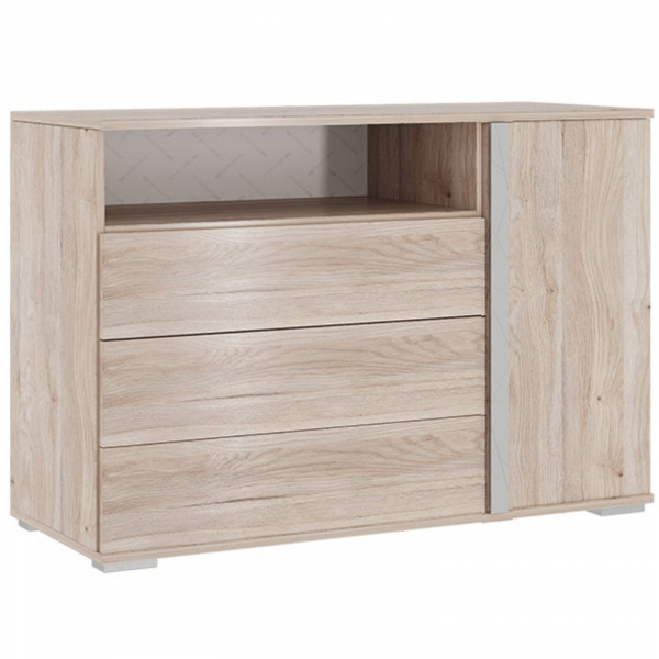 Стильный и модный комод «Лайк». В комоде очень много отделений в которые вы сможете разместить множество вещей, а ширина позволит использовать его как тумбу ТВ. Универсальная расцветка позволит поставить его с модулями из других коллекций. Ящики открываются с помощью системы PUSH LATCH. Для придания яркости и индивидуальности может комплектуется дополнительным цветным модулем полкой вкладышем.