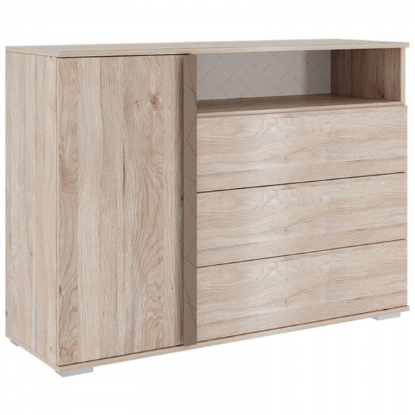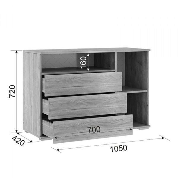 Стильный и модный комод «Лайк». В комоде очень много отделений в которые вы сможете разместить множество вещей, а ширина позволит использовать его как тумбу ТВ. Универсальная расцветка позволит поставить его с модулями из других коллекций. Ящики открываются с помощью системы PUSH LATCH. Для придания яркости и индивидуальности может комплектуется дополнительным цветным модулем полкой вкладышем.