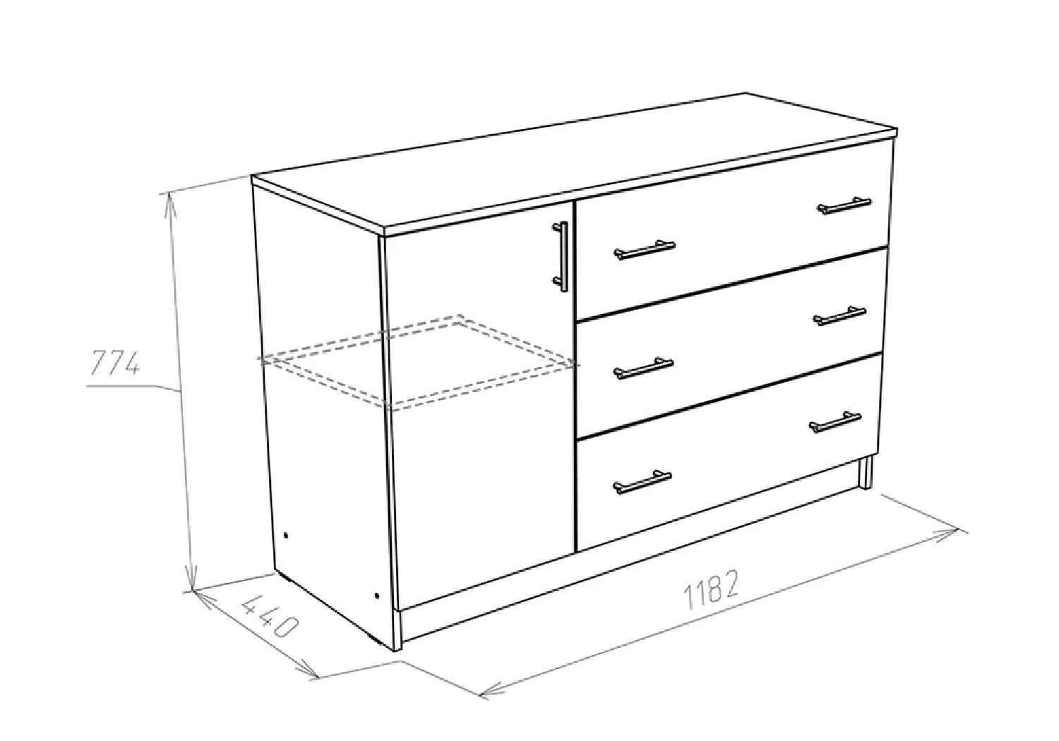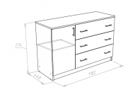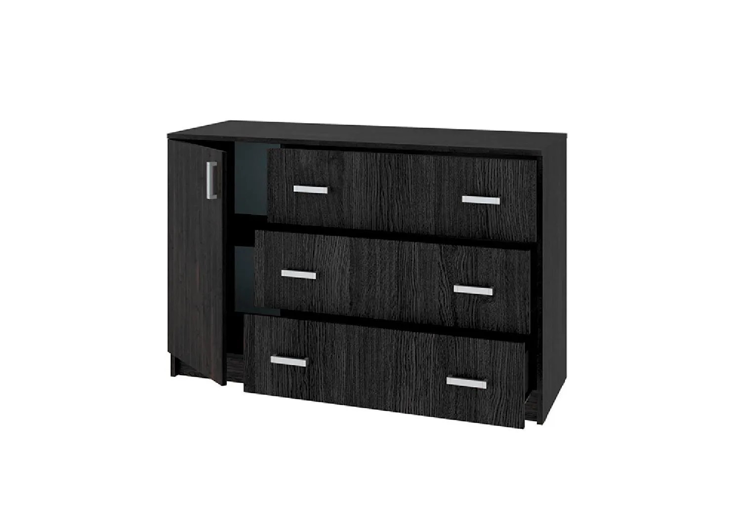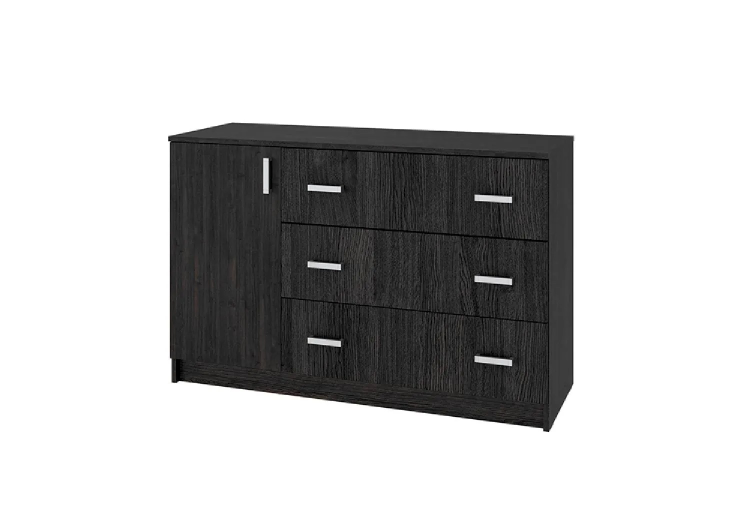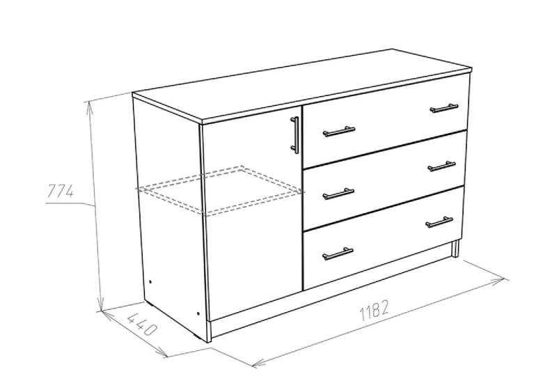 Комод  Лофт 1200 это функциональный элемент помещения, который поможет аккуратно разместить предметы гардероба, аксессуары или документы. В конструкции изделия предусмотрены три выдвижных ящика и два отделения за распашной дверкой. Широкая столешница позволяет поставить плоский телевизор практически любой диагонали.