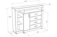 Корпус комода изготовлен из ЛДСП класса экологичности Е1, поэтому изделие разрешено эксплуатировать в квартирах с маленькими детьми.