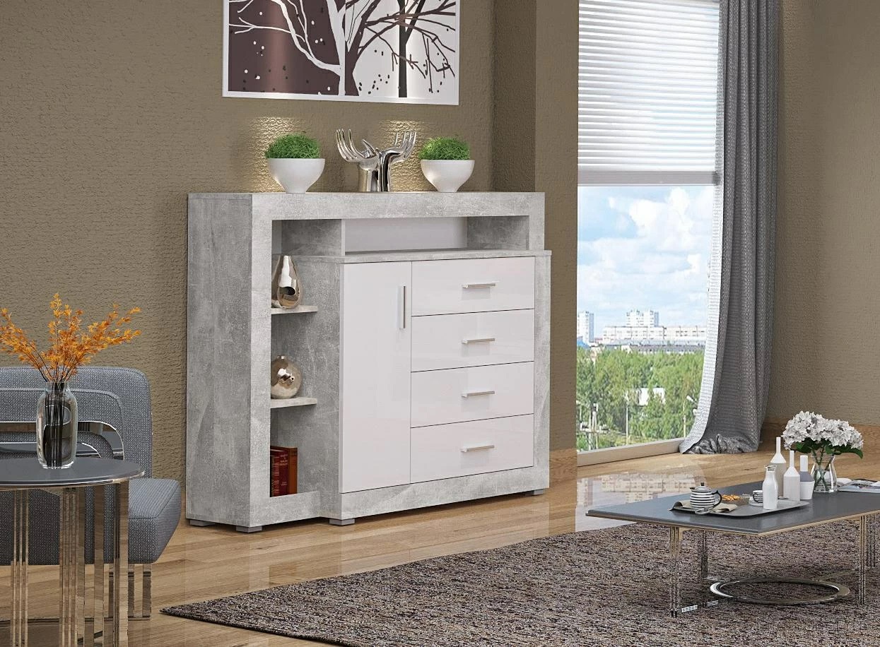 Стильный комод Монтана Atelier/белый глянец идеально впишется в современный интерьер. Благодаря функциональным ящикам и полкам модель поможет организовать хранение одежды и аксессуаров.