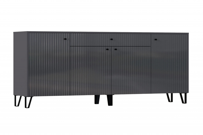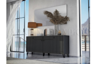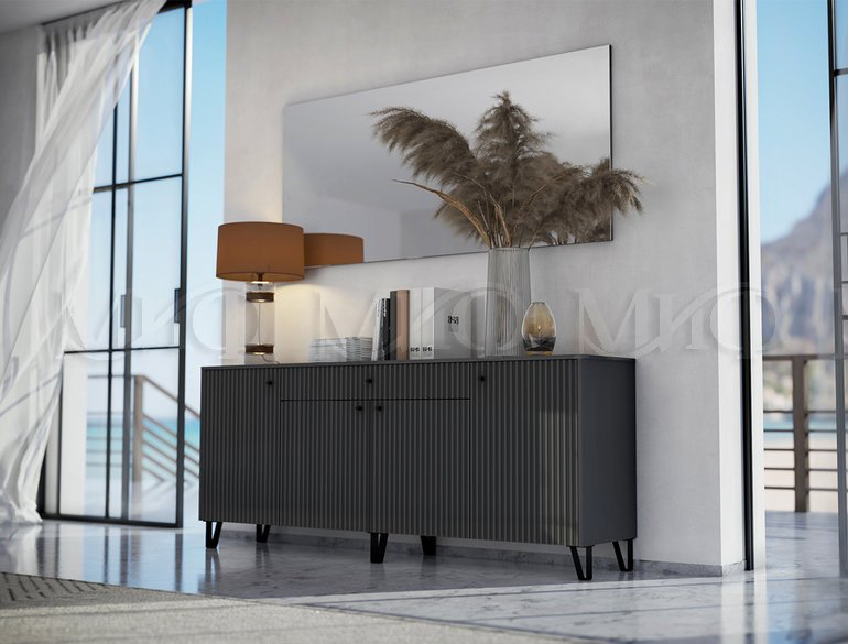 Фасады декорированы стильной резной фрезеровкой.Высокие ножки контрастного черного цвета.Основные достоинства модели