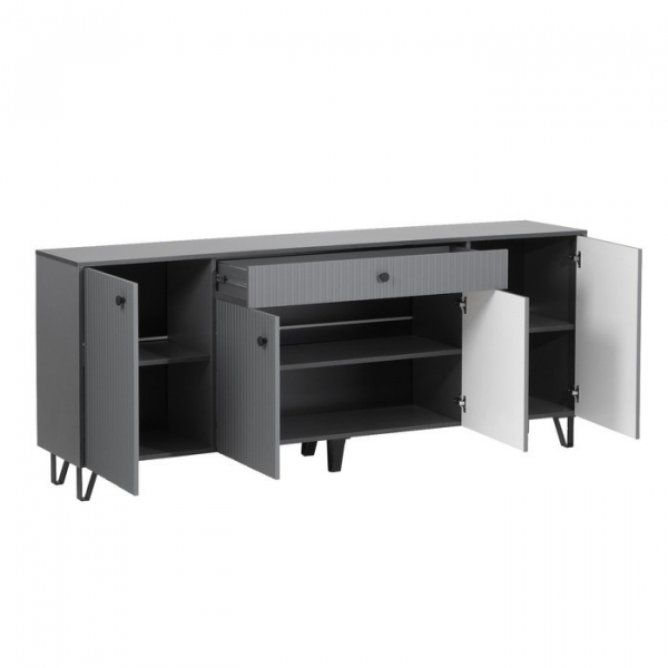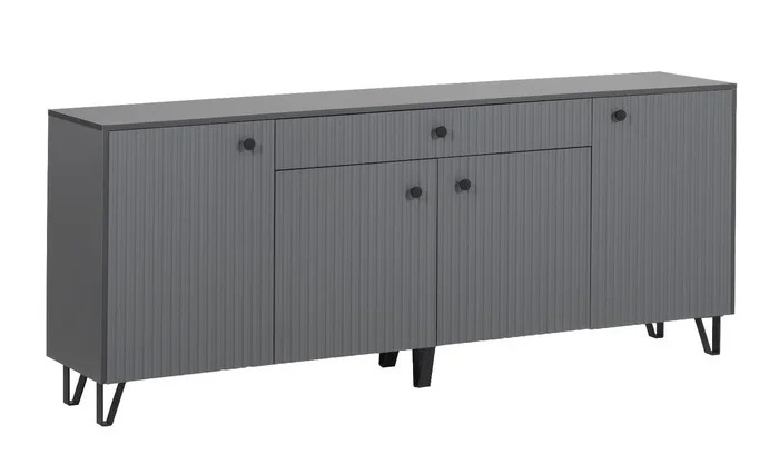 Фасады декорированы стильной резной фрезеровкой.Высокие ножки контрастного черного цвета.Основные достоинства модели