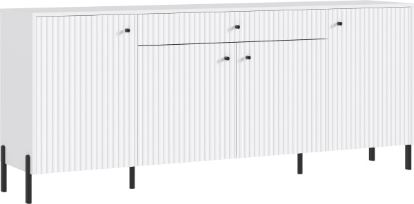 Фасады декорированы стильной резной фрезеровкой.Высокие ножки контрастного черного цвета.Основные достоинства модели