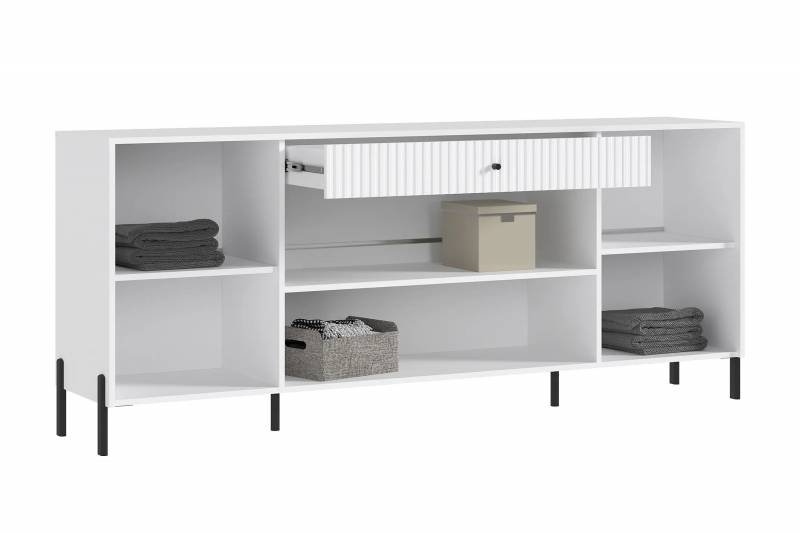 Комод Оливия прекрасно впишется в интерьер вашей комнаты, а также привнесет нотки элегантности. Теперь у вас появится дополнительное место для бережного хранения одежды, нижнего и постельного белья, разнообразных аксессуаров и любимой косметики. Комод одним выдвижным ящиком и полками, скрытыми за распашными дверками. Сверху на комоде можно разместить несколько семейных фотографий, вазу с цветами, косметику и украшения.А также может служить подставкой для телевизора.