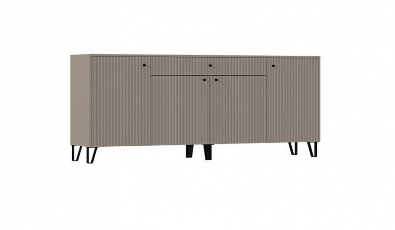 Фасады декорированы стильной резной фрезеровкой.Высокие ножки контрастного черного цвета.Основные достоинства модели