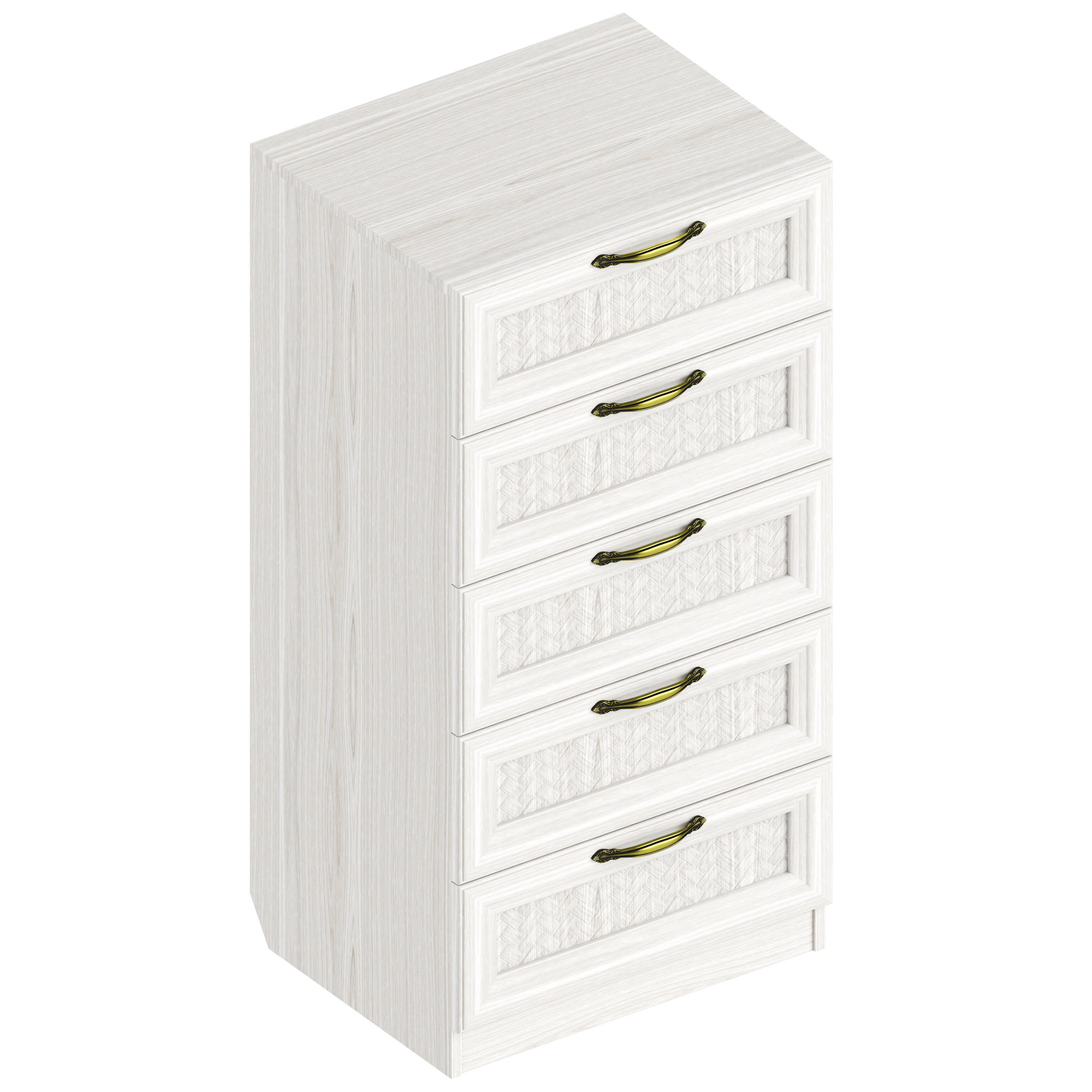 Комод Александрия СА-03 прекрасно впишется в интерьер вашей комнаты, а также привнесет нотки элегантности. Теперь у вас появится дополнительное место для бережного хранения одежды, нижнего и постельного белья, разнообразных аксессуаров и любимой косметики. Комод оснащен пятью выдвижными ящикам. Сверху на комоде можно разместить несколько семейных фотографий, вазу с цветами, косметику и украшения.