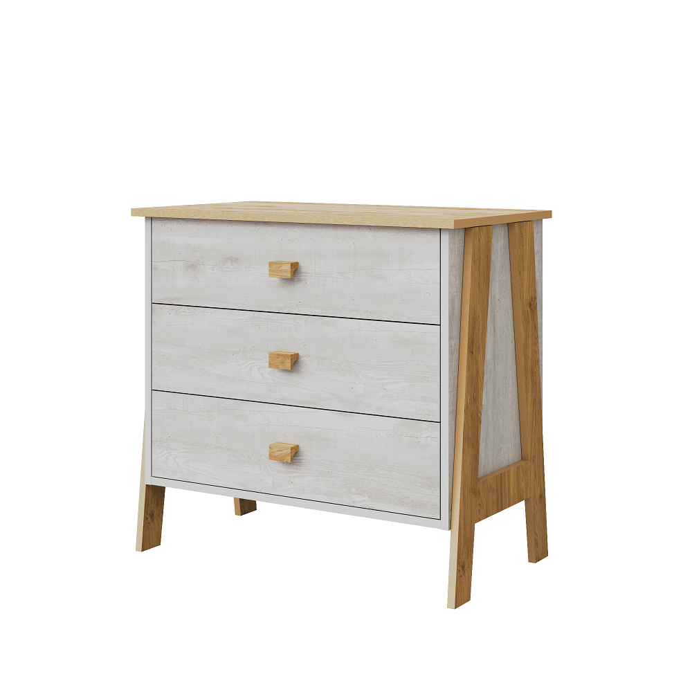 У комода Скандинавия 1 идеально подобранное сочетание цветов фасадов создают атмосферу романтизма и чувственности в спальне.Столешница широкая, просторная позволяет разместить элементы декора, фото. Комод Скандинавия производится из экологически чистых материалов - корпус и фасад из ЛДСП. Торцы защищены кромкой ПВХ. Внешняя простота без вычурности, не отменяет красоту и гармоничность стиля коллекции мебели Скандинавия. Такой комод станет важным и функциональным предметом мебели, который дополнит интерьер спальни, детской комнаты и внесет удобство и уют.