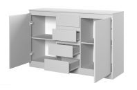 Комод STERN Т-4 Белый 4 ящика имеет компактные габариты, но обладает необычайной вместительностью. Таким изделием вы сможете заменить громоздкий и ненужный шкаф. Модель за распашными дверьми скрывает полки, которые созданы для аккуратного размещения одежды, постельного и нижнего белья. По центру находятся четыре выдвижных ящика для хранения разнообразных аксессуаров и косметики. Сверху на комоде вы сможете расположить вазу с красивыми цветами и семейные фотографии.