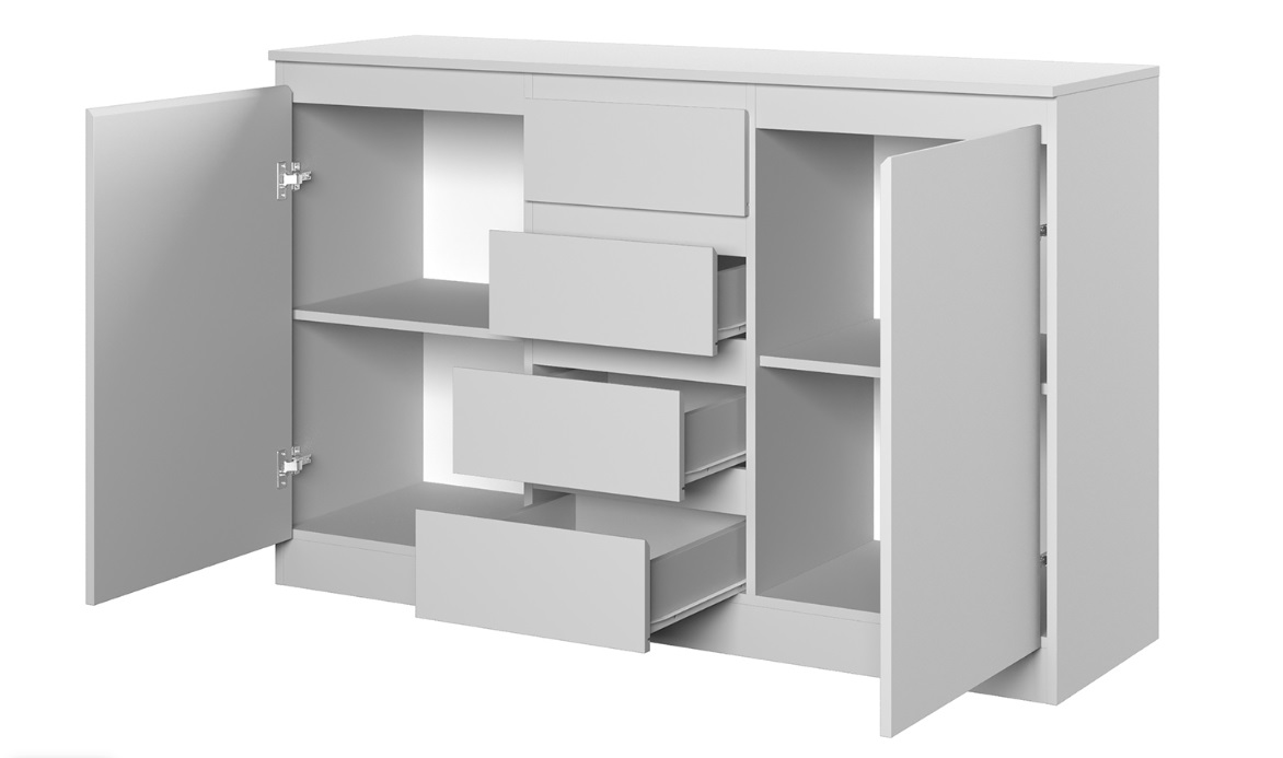 Комод STERN Т-4 Белый 4 ящика имеет компактные габариты, но обладает необычайной вместительностью. Таким изделием вы сможете заменить громоздкий и ненужный шкаф. Модель за распашными дверьми скрывает полки, которые созданы для аккуратного размещения одежды, постельного и нижнего белья. По центру находятся четыре выдвижных ящика для хранения разнообразных аксессуаров и косметики. Сверху на комоде вы сможете расположить вазу с красивыми цветами и семейные фотографии.