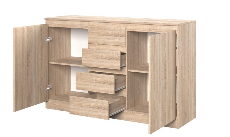 Комод STERN Т-4 ящика имеет компактные габариты, но обладает необычайной вместительностью. Таким изделием вы сможете заменить громоздкий и ненужный шкаф. Модель за распашными дверьми скрывает полки, которые созданы для аккуратного размещения одежды, постельного и нижнего белья. По центру находятся четыре выдвижных ящика для хранения разнообразных аксессуаров и косметики. Сверху на комоде вы сможете расположить вазу с красивыми цветами и семейные фотографии.