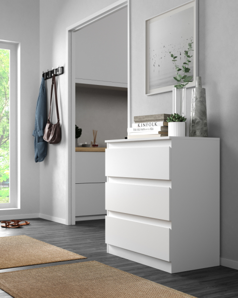 Комод STERN Т-3 - компактная модель, которая удачно дополнит рабочий уголок домашнего кабинета, Данная модель может быть использована как тумба под телевизор, в ящиках которой можно хранить разные мелочи для дома, а если совместить комод с зеркалом, то получится отличный комплект прихожей. Комод поместится даже в ограниченном пространстве, а благодаря лаконичному исполнению и отсутствию декора будет отлично смотреться в большинстве современных интерьеров. Без этого элемента мебели не обходятся ни один дом или квартира. Наш комод отлично подойдет для детских вещей, для сувениров, для одежды, для инструментов. Комод с ящиками будет уместен везде: спальня, детская, кабинет, вы даже можете поставить его в офис для хранения документов.