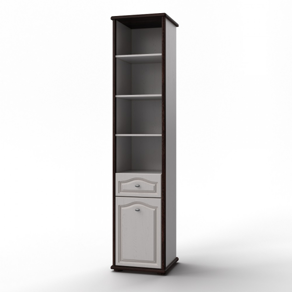 Шкаф 1Д1Я Сицилия станет прекрасным дополнением общего интерьера уютной комнаты. За распашной дверью установлена съемная полка, созданная для хранения сложенной одежды, белья и различных аксессуаров. Небольшой выдвижной ящик пригодится для различных мелких, но весьма важных вещей. На открытых полках будут гармонично смотреться увлекательные книги, яркие фотографии и оригинальные предметы декора.