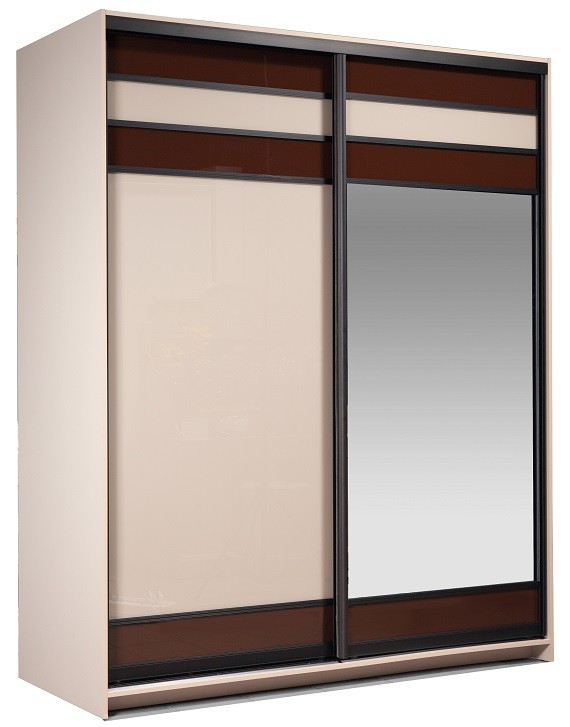 Большой и вместительный, стильного оригинального дизайна шкаф-купе Хилтон КМК выполнен в цвете: капучино светлый / мокко глянец. На шкаф установлен механизм шкафа купе Сенатор. Система раздвижения Сенатор обеспечивает плавное и бесшумное скольжение дверей и создаёт эффект парения в воздухе. Левая дверь изготовлена из комбинации стекла лакобель светлого и темного. Лакобель представляет собой специальным образом окрашенное стекло. Правая дверь - из зеркальной вставки и вставки из комбинации стекла светлого и темного. Шкаф не только нарядный, но эргономичный.За раздвижными дверьми находится штанга для вешалок-плечиков с красивыми платьями и деловыми костюмами. Множество полок пригодятся для автономного и аккуратного хранения одежды и белья семейной пары. Мебель Хилтон создаст в спальне атмосферу расслабления, что послужит гарантией полноценного отдыха и крепкого сна.